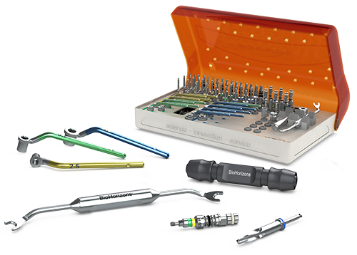 The BioHorizons guided surgery kit offers the precision and predictability of guided implant placement with a streamlined, single kit design. All components are color-coded to avoid the complexity seen with other systems while offering our customers predictable implant placement for optimal esthetic outcomes. The guided surgery kit can be used to place all diameters from 3.0mm to 5.8mm* of the highly successful Tapered Internal, Tapered Plus, Tapered 3.0 and Tapered Tissue Level.