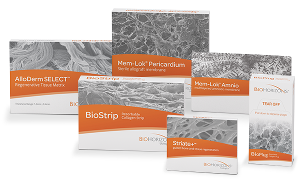 Recognized as a global leader for hard and soft tissue solutions, BioHorizons offers a comprehensive biologics portfolio upon which you and your practice can build a solid foundation. Our broad family of regenerative products are scientifically proven in a wide variety of grafting applications and formulated for consistent, quality performance.