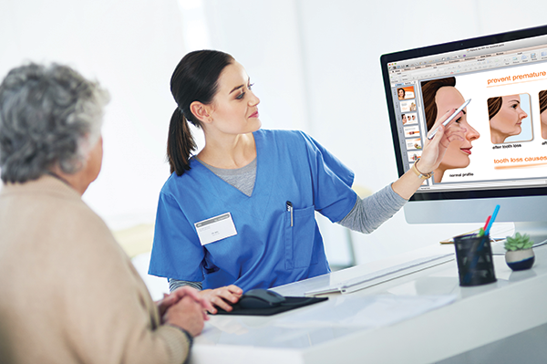 Patient-friendly illustrations can be used on websites, print materials and advertisements to help describe treatment options. Illustration topics include: dental implants for tooth replacement; stabilizing dentures using implants; and grafting procedures. Each illustration has been created under the supervision of dentists to provide accurate, anatomical detail on normal and pathological dental anatomy, procedures, technologies and treatments.