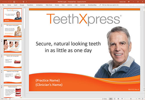 Use the patient education PowerPoint presentation in individual or group settings to educate patients and colleagues on the benefits of dental implants for tooth replacement. The 25-slide presentation helps patients understand dental implants and grafting as it relates to oral health, risks, treatments and solutions. It is available in English and Spanish.